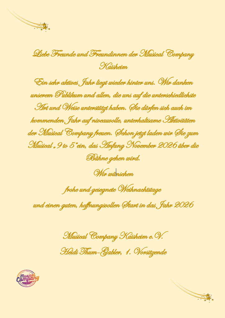 Du singst gut, bist Tenor oder hoher Bariton und möchtest gerne bei einem Musical mitwirken?